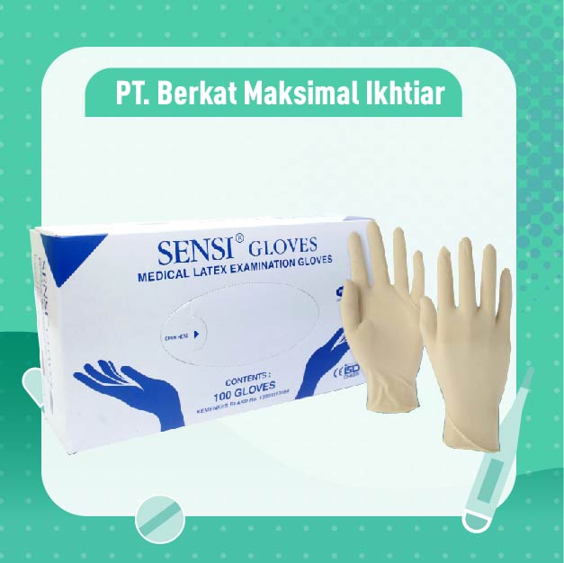 Sarung Tangan Sensi Powdered Medical Latex Gloves Ukuran S M L – Box Isi 100 Pcs